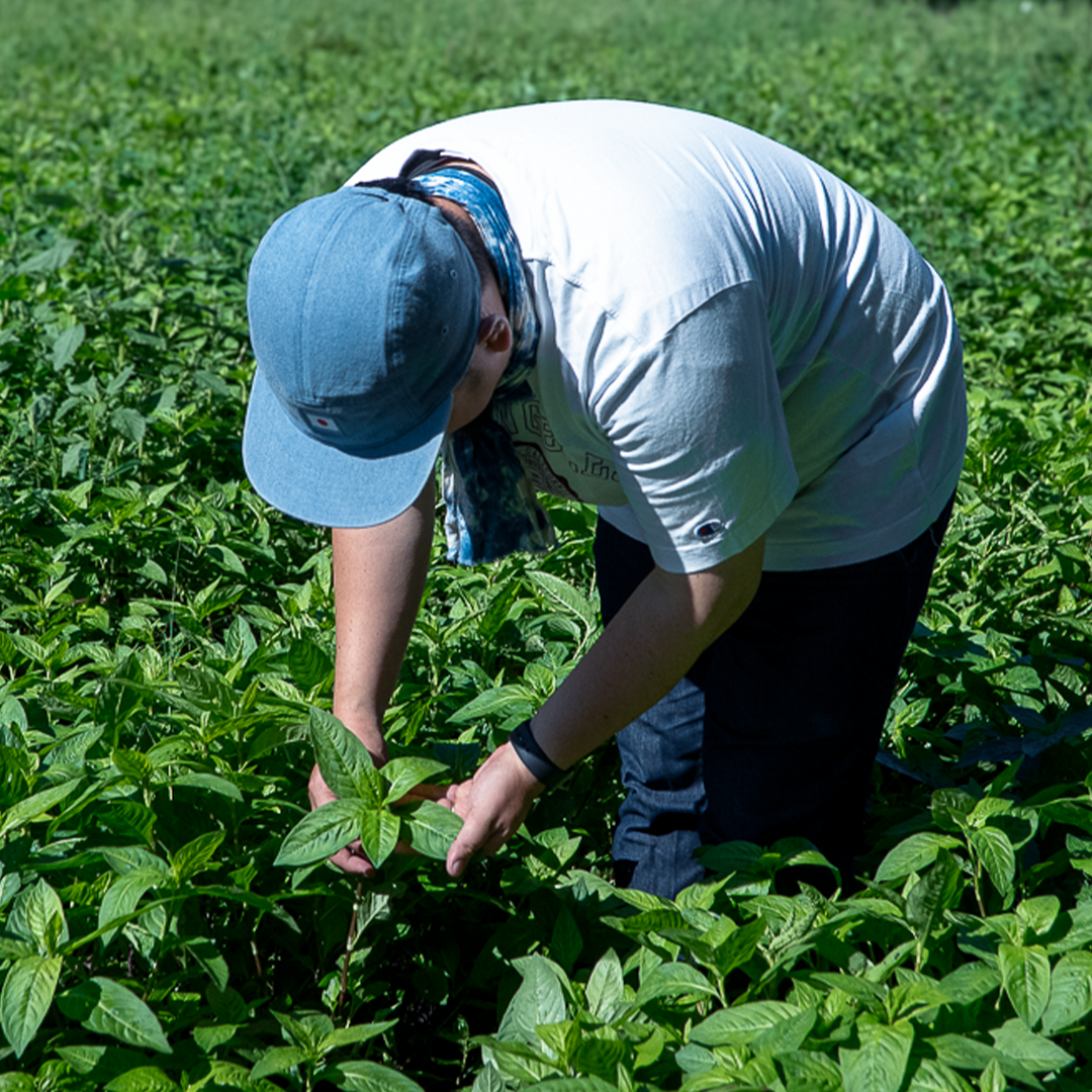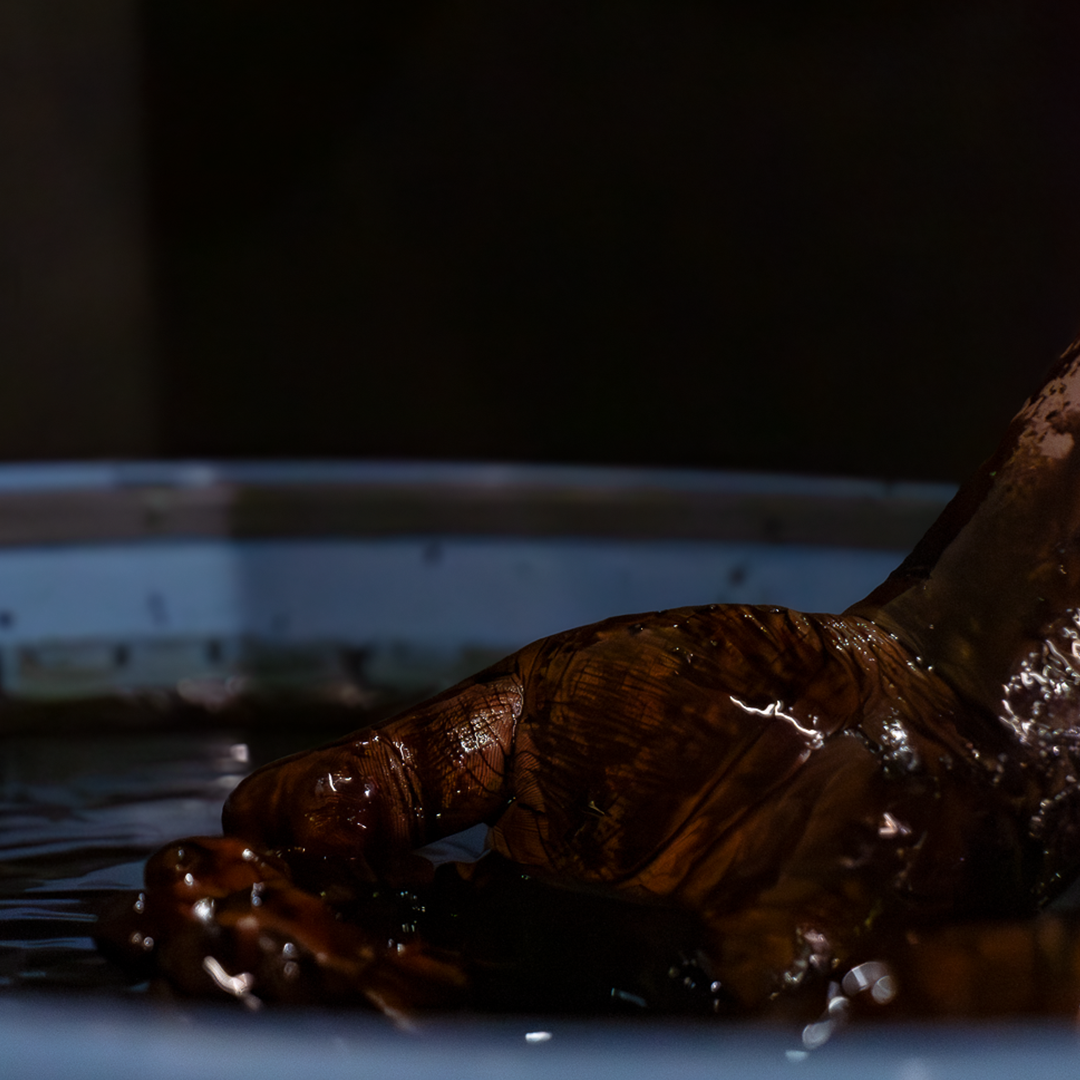 自らの手で育てた藍を丁寧に染料に仕上げます。